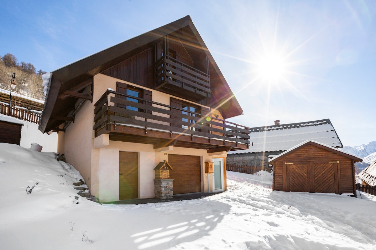 venez découvrir ce petit chalet spacieux et élégant entièrement réalisé avec des matériaux de qualités . Situé à 200 m des remontées mécaniques vous aurez le plaisir de partir skis aux pieds ou de profiter de la navette à 50 m Pour les adeptes du ski de fond vous serez directement sur la piste . les enfants pourront s'essayer aux bonhomme de neige et à la luge juste à coté du chalet. L'été vous profiterez du mobiliers de jardin , du barbecue dans un cadre verdoyant face au galibier