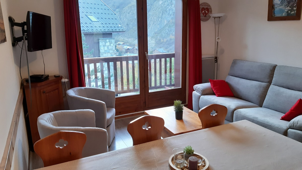 Appartement duplex 6 personnes meublé dans le style savoyard de 52m2. Classé meublé de tourisme 4 étoiles. Aller et Retour à skis car piste à 30 mètres, télécabines à 200 mètres, commerces et centre village à 250 mètres, supérette de station Sherpa à 100 m. VALLOIRE est un village typique et accueillant dont nous sommes tombés sous le charme. Il offre 150 km de pistes entre 1480 et 2600 m + circuits raquettes et ski de fond. Navettes en hiver qui passent au pied de l'appartement.