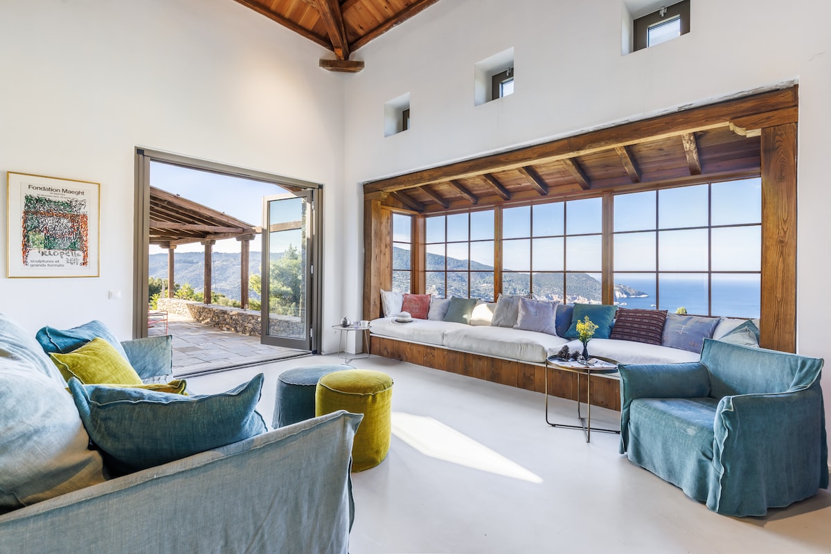 The mesmerizing Pelagoon Villa in the quiet village of Achladies on Skiathos Island, is a beautiful example of minimalism and contemporary architecture. The chic home boasts sublime views over the glistering Aegean Sea and is easily one of the most exceptional villas on the island. Set among olive trees and verdant greenery, it is the perfect haven for those seeking tranquility and seclusion during their stay.