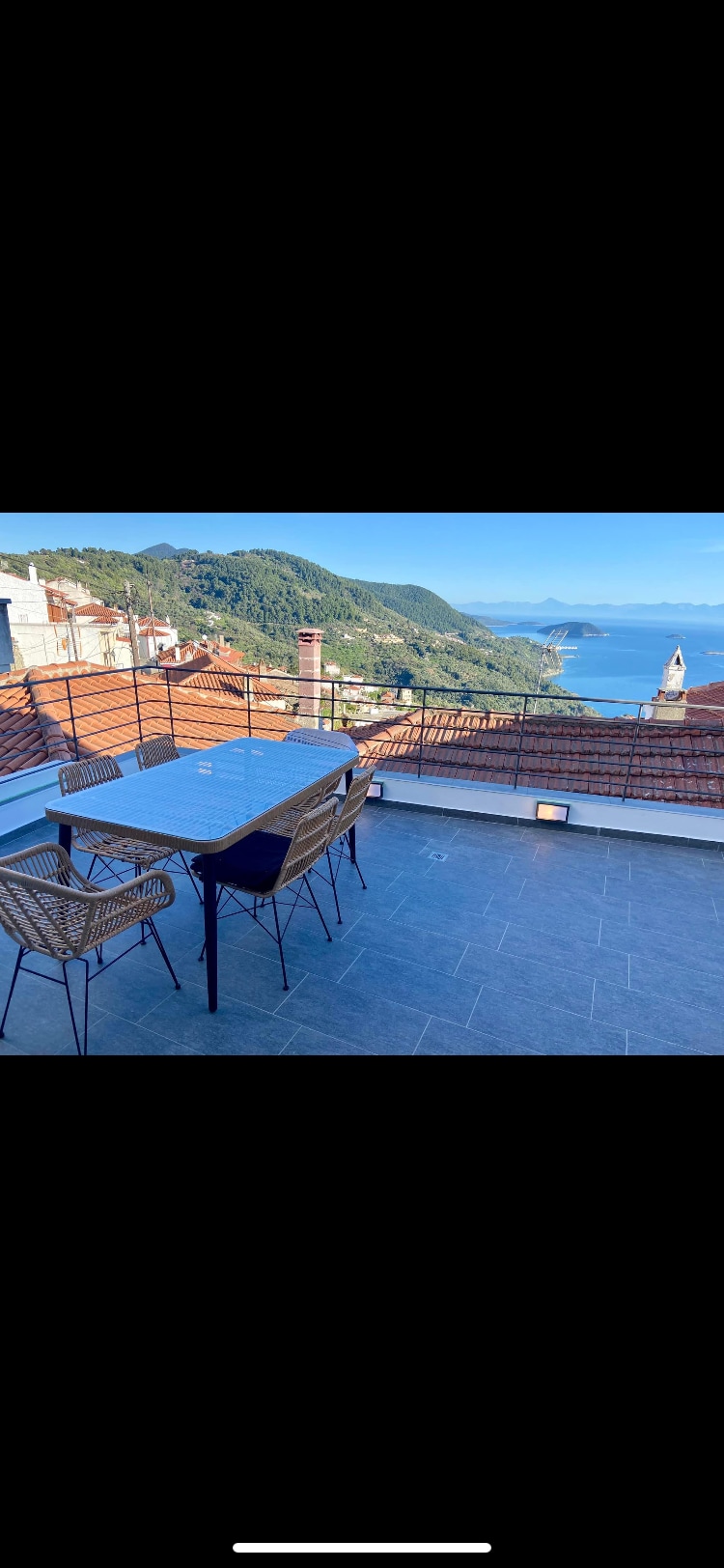 A modern & minimal decorated 2-floor villa with a private swimming pool. Located near Skiathos town (approx. 5 min drive to port (1.5 km) & 5 min walk (500meters) to top of Papadiamantis str. Stunning view of the sea, port and town. Located on the 1st floor there is a living room, wc, kitchen & swimming pool with large balcony area. On the ground floor are two spacious master bedrooms with en-suit bathrooms & a veranda. The villa is surrounded by a beautiful garden and olive groves all around.
