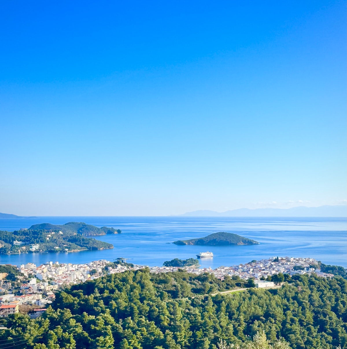 Villa Orion is situated about 1km outside the main town of Skiathos. It is approximately 25 minutes on foot. There is a supermarket at the bottom of the road as well as a bus stop which can take you to town and to the Southern beaches. The apartment is on a hill with a beautiful 180 degree view of the sea and is surrounded by a charming garden. We suggest taking a taxi upon your arrival if you are not renting a vehicle, as the walk up the hill with heavy suitcases is not advisable.