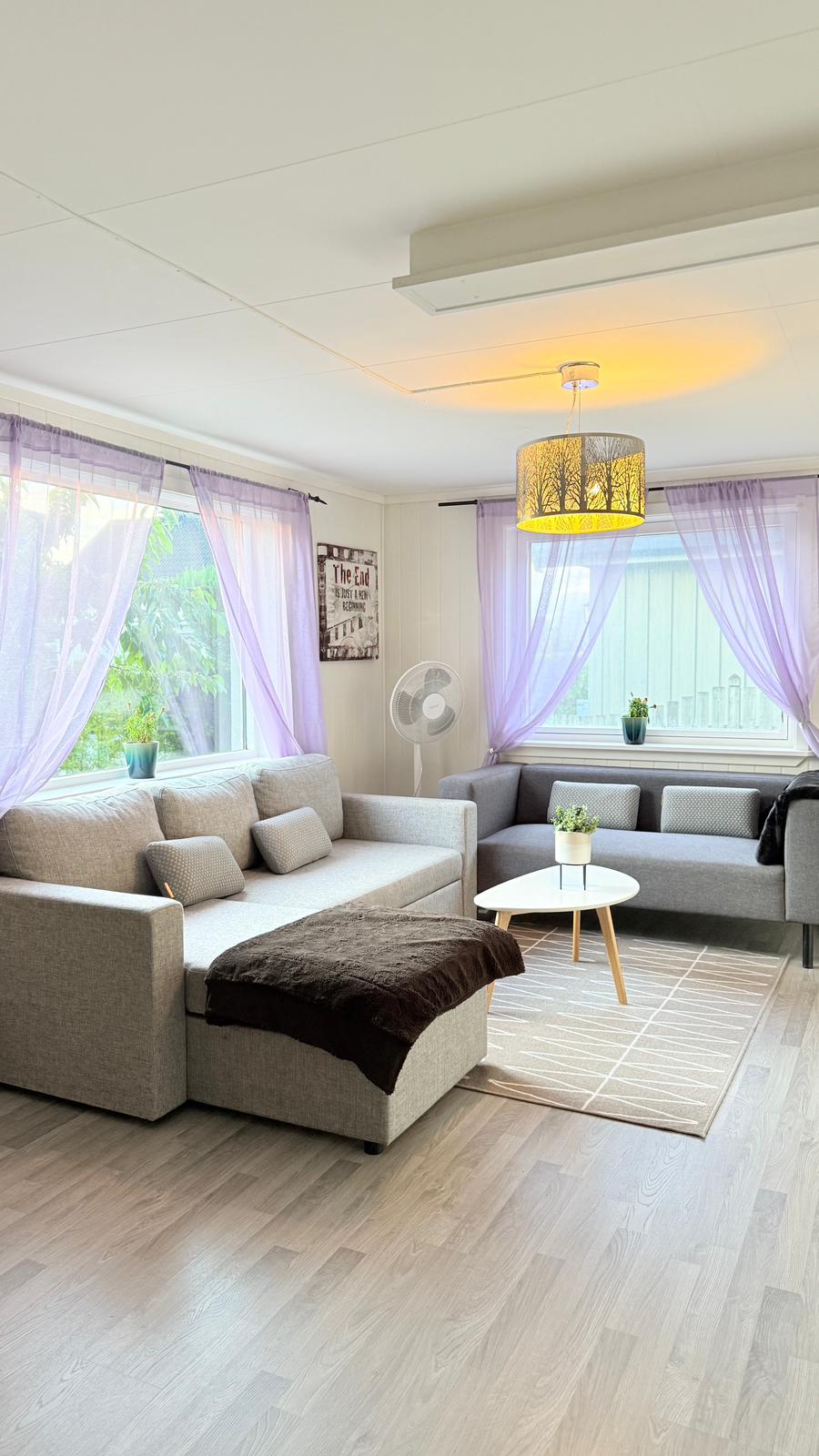 The 115 m2 (living space) house is built in the late 1920s by my great-grandfather & grandfather. The ground floor has a bedroom with a double bed, and a small bathroom with a shower right next to it. The toilet is literally one step away in the hallway. The living room is quite spacious with a 50-inch TV, Blu-ray player, and some Blu-ray videos for your pleasure. Between the bedroom and the living room is a well-stocked kitchen with stove, microwave and fridge.