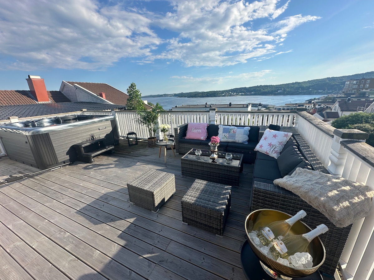 I Helgeroa finner du vakre, solrike Utsikten, som bærer sitt navn med rette. Det idylliske huset har vært i familien i 120 år og er nå nyrestaurert med høy standard. Nå kan også du få nyte Utsikten, enten det er til ferie eller jobb. Det er god plass til både storfamilie og kolleger, eller kom alene. Rett i nærheten venter Norges vakreste kyststi, strender, spisesteder, aktiviteter, severdigheter, gårdsbutikk, Menybutikk og alt du trenger for gode dager. Kom og nyt Utsikten - både ute og inne.