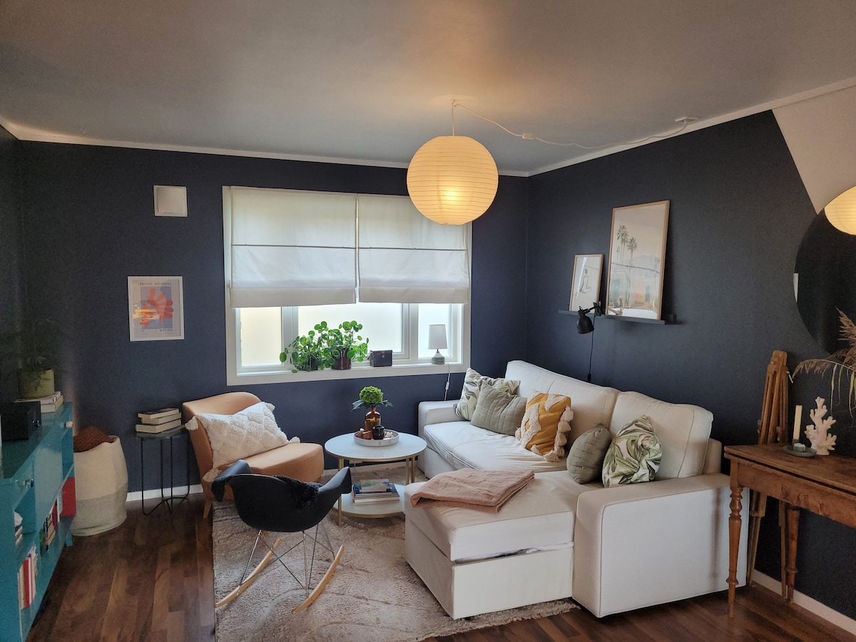Koselig hybelleilighet i sentralt, rolige omgivelser. Egen inngang og parkering rett utenfor porten. 150 m til park m lekeplass og klatrepark for barn, 200 m til nydelig strand, 200 m til bakeri og fiskebutikk og 300 m til dagligvare. Nær havn med ferge til Hirtshals. Larvik togstasjon ca: 2 km. Fine turområder i nærheten.