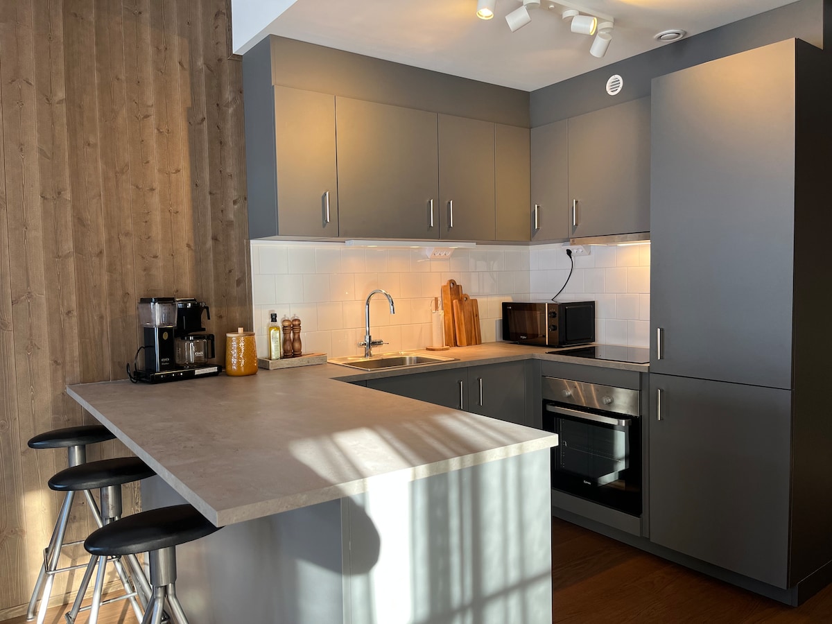 I nybyggda Timmerbyn, mellan Experiumtorget och Söderåstorget, finner ni detta påkostade boende med allt man kan önska sig för en magisk fjällvistelse. Pisten hittar du rätt utanför dörren. Boendet är på 65 kvm med 3 sovrum, 2 badrum, bastu, öppen brasa, fullutrustat kök i öppen planlösning mot vardagsrummet. Ytterligare faciliteter finns såsom skidförråd med pjäxtork, tvättmaskin/torkskåp samt egen parkeringsplats. Den generösa takhöjden tillsammans med stenlagd murstock skapar en varm atmosfär