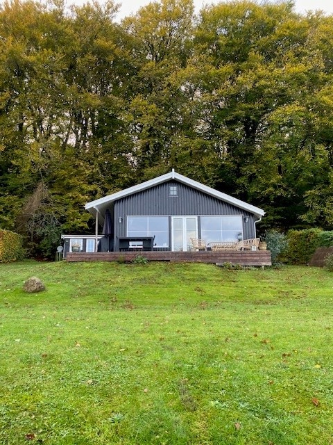 Vores hyggelige træhus ligger kun ca.150m fra sandstranden på Louns halvøen i skøn natur, med mange muligheder for gå, løbe og cykelture. Dejligt havnemiljø med færge, fiskeri og lystbådehavn. Nyd en frokost eller middag på byens kro eller Marina, med udsigt over fjorden. Huset er indrettet med tre små soveværelset, et funktionelt køkken, Og et nyistandsat badeværelse. Opvarmning er med varmepumpe, brændeovn. Gratis og stabilt WiFi internet Sat TV med Danske og div. tyske kanaler.