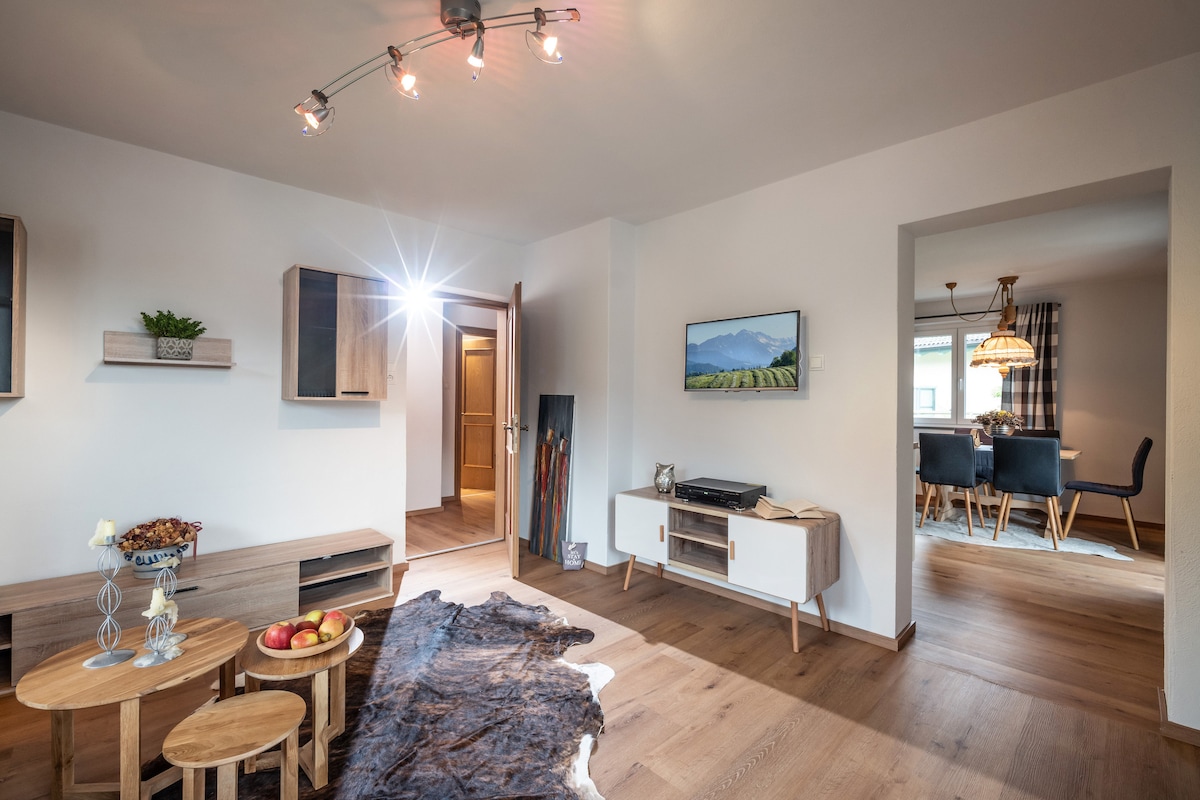 Welcome to Apartment Eve in Söll am Wilden Kaiser! The 65 m² accommodation consists of a living room with a comfortable sofa bed for 2 people, a fully equipped kitchen with dishwasher, 1 bedroom and 1 bathroom as well as a separate toilet and thus offers space for 4 people. The equipment also includes high-speed WLAN (suitable for video calls) and a TV. Three private balconies provide you with the perfect setting to greet the morning or wind down the evening.