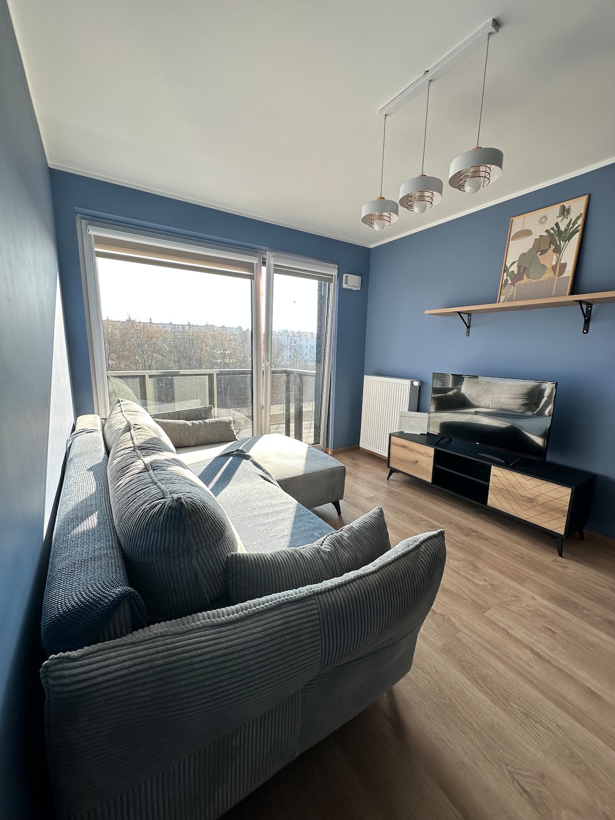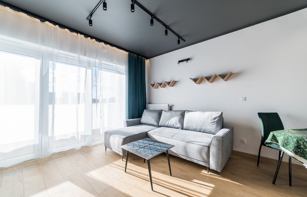 The apartment consists of a room with a kitchen, bathroom and separate wardrobe. There is a bed for two people and a sofa bed. What’s more, the apartment has a large and sunny balcony. It is located on the first floor. The building was completed in 2017. All furniture and accessories are new since they were purchased specially for the quests. Apartment size is 31 square meters. The balcony is about 5 square meters. Within the 8-minute walk there is a Poznan tram stop.