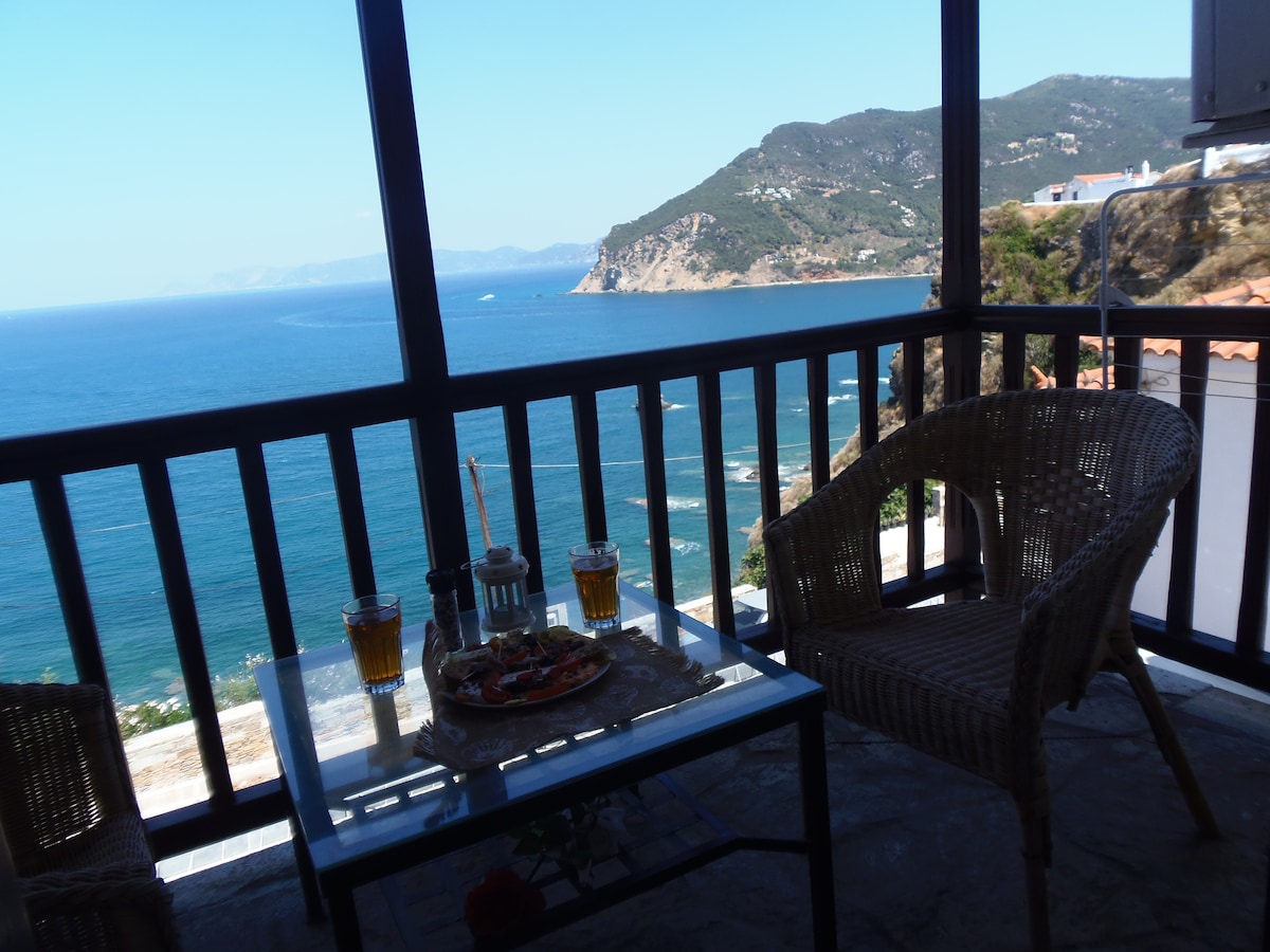We restored this old dwelling with great care and respect aiming not to "betray" its history and charm. The 2 floors have been reformed to a functional 70 m2 apartment with a private entrance and a big veranda. Simple but elegant, it can accommodate visitors with interest in the culture of a place as expressed through the local craftsmanship; and it will be a great pleasure for us to help them discover Skopelos in the best way.