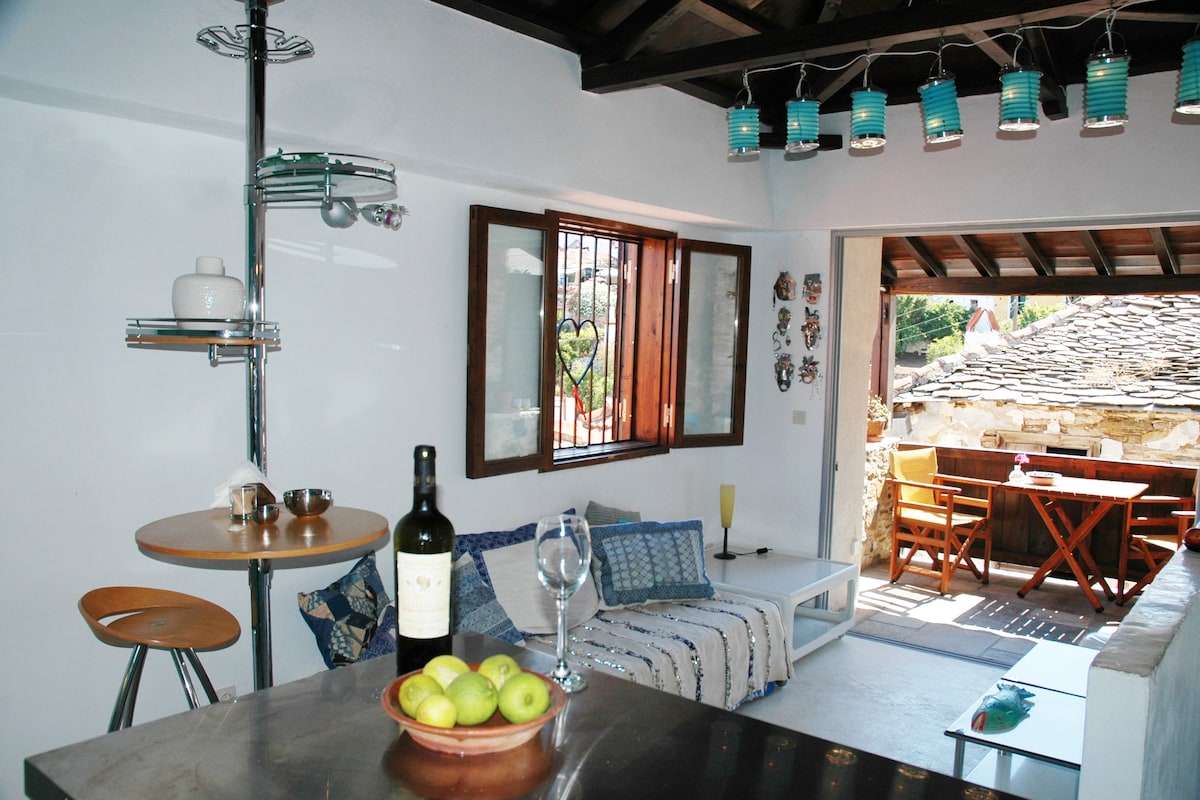 A truly unique house, built in 1910 by a wealthy captain. Located in one of the first neighborhoods of Skopelos, right in front of the port 50 meters away from the sea, this house offers guests the chance to experience the authentic life of locals. Enjoy every time of the day with an amazing wide open view of Skopelos port and the surrounding mountains. This one of a kind house offers all modern facilities for a comfortable stay, while featuring a number of Skopelos antiques that will amaze you!