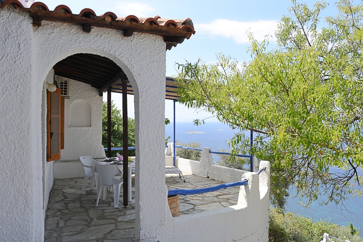 Το μικρό δικό σας σπίτι στο δάσος, με όλες τις ανέσεις για αξέχαστες διακοπές για 5 άτομα. 2km από τον Πάνορμο, 8km από την χώρα της Σκοπέλου, 19km από το λιμάνι της Γλώσσας. Καθημερινή Καθαριότητα, Ιδιωτική πισίνα 5x8m, Κλιματιζόμενοι χώροι, BBQ, free WiFi.