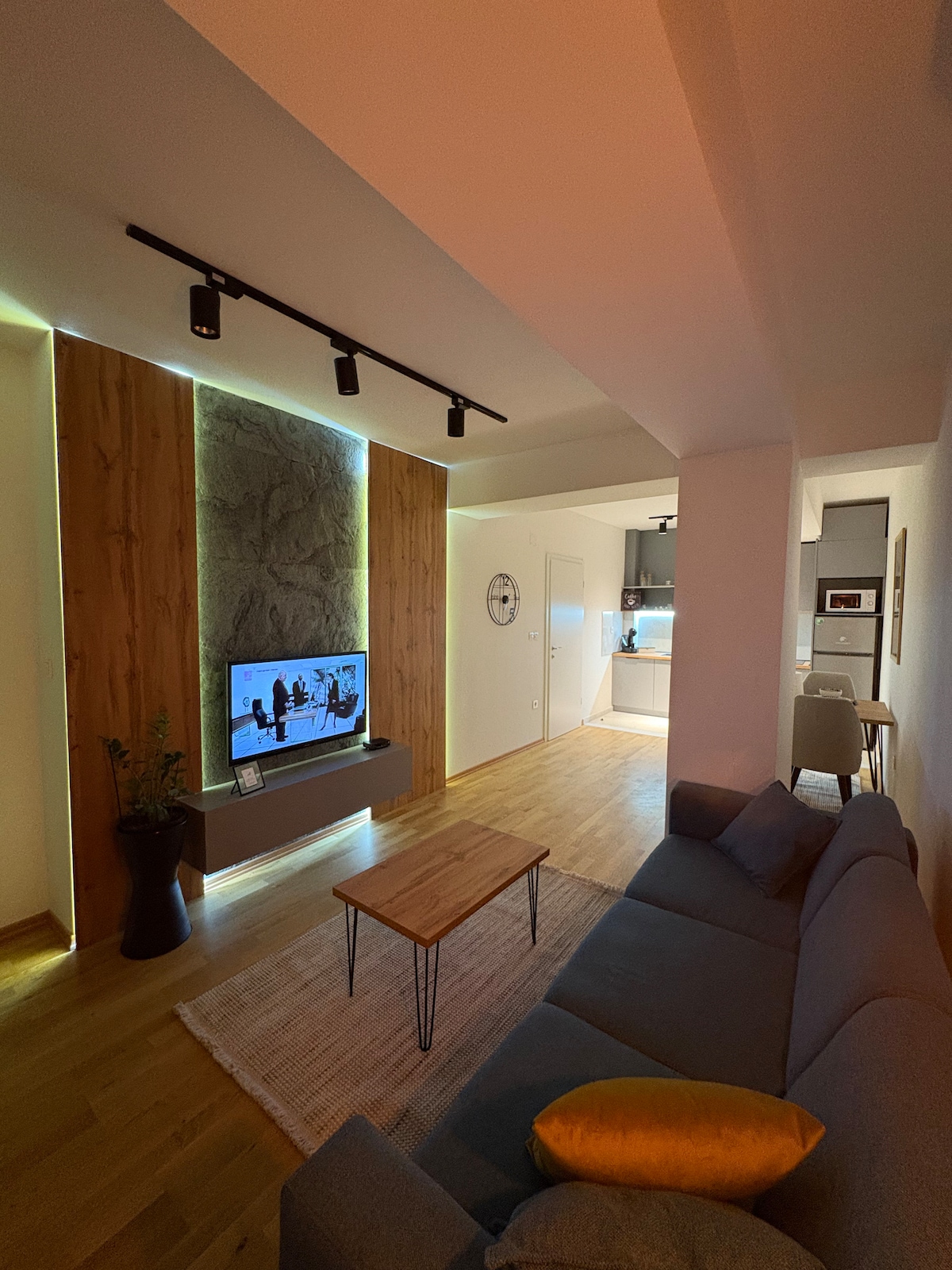 Stunning duplex apartment, recently renovated with modern and spacious design. Nestled in the best neighborhood of Skopje, everything is within walking distance. From the city center and landmarks to the best party places, restaurants and bars - you'll be in the heart of it all. Known for its high property values, this safe neighborhood ensures peace of mind during your stay. Experience the ultimate blend of convenience, style, safety, and a wonderful view in our magnificent duplex apartment