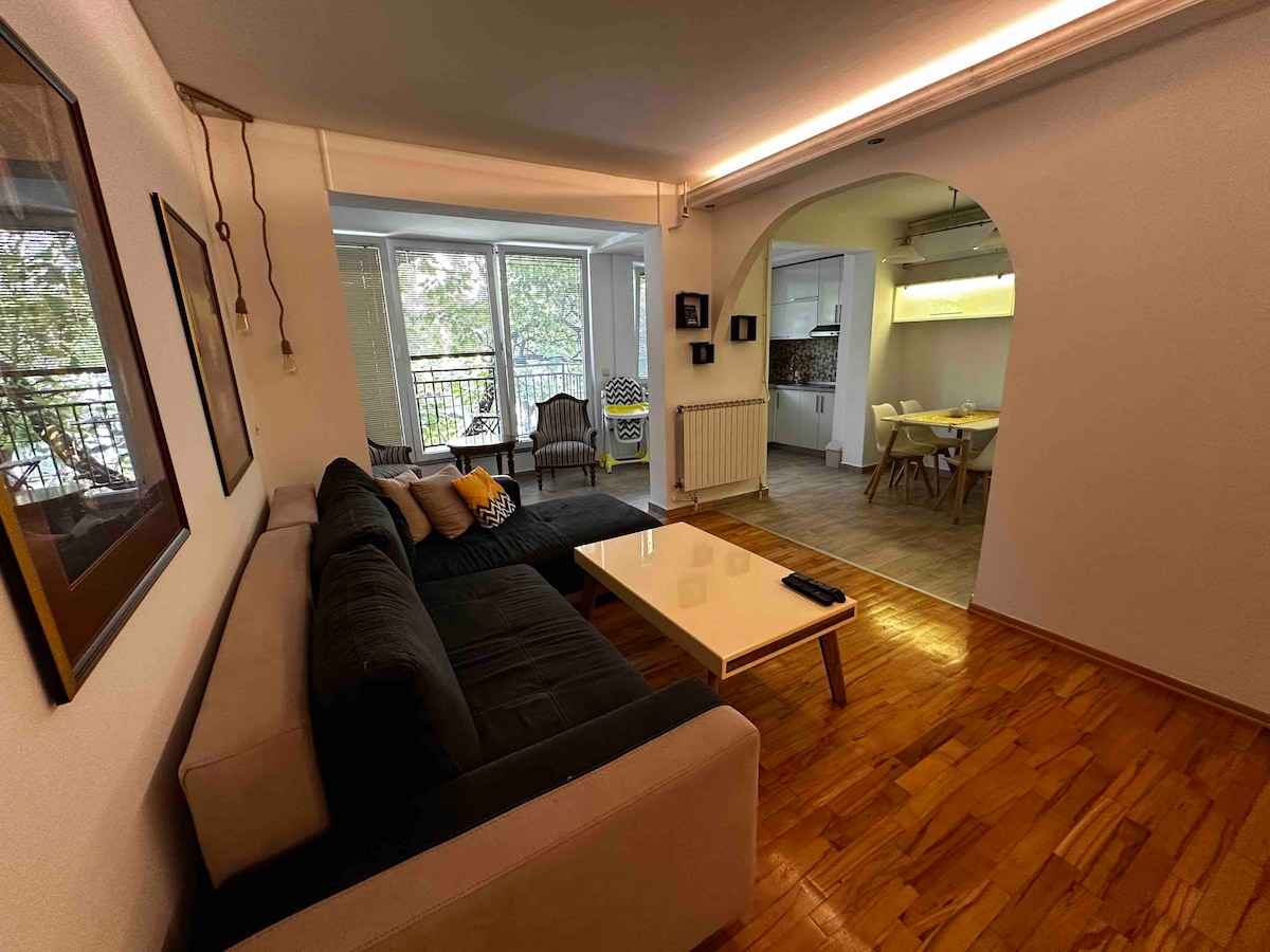 Apartment in the heart of Skopje. The Main City Square, the Old Bazar and many other city sights and tourist attractions are accessible on foot. Lot of bars and restaurants in the vicinity of the apartment. Its surrounding is oasis in the vibrant city, quiet and it has a view of courtyard with trees. The comfortable and pleasant atmosphere is enhanced with unique handmade wood details and furniture, designed and crafted by a graduated sculptor. You can park your car in a near garage.