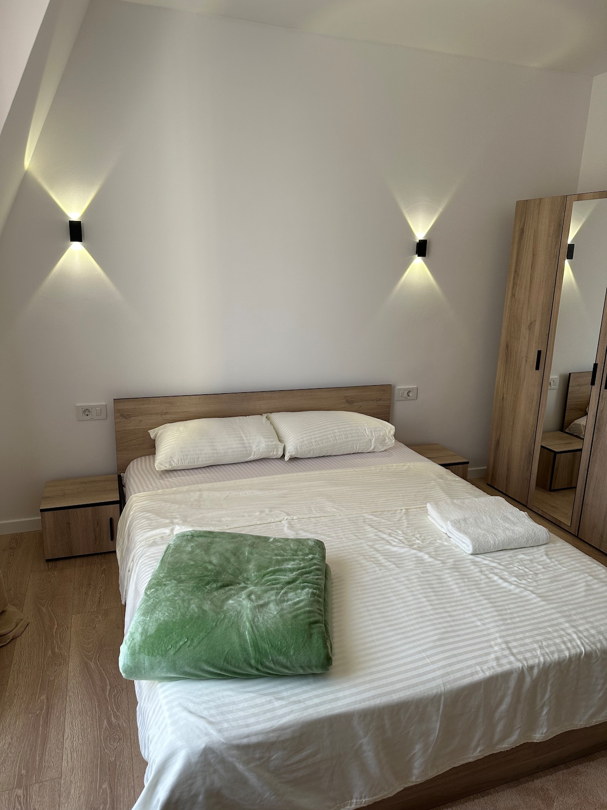 A 2 bedroom apartment situated within a 5-7 min minutes walk from the city centre and also with free 🅿️ spot . It provides all comodities for a pleasant stay. A very light living room equipped with a large sofa and a flat screen TV (satellite channels) opens up to the dining area and the equipped kitchen. The single-bed & king size-bed bedrooms are next to eachother. Completed with a bathroom with a shower & fresh towels.The apartment is air-conditioned and it has free Wi-Fi.
