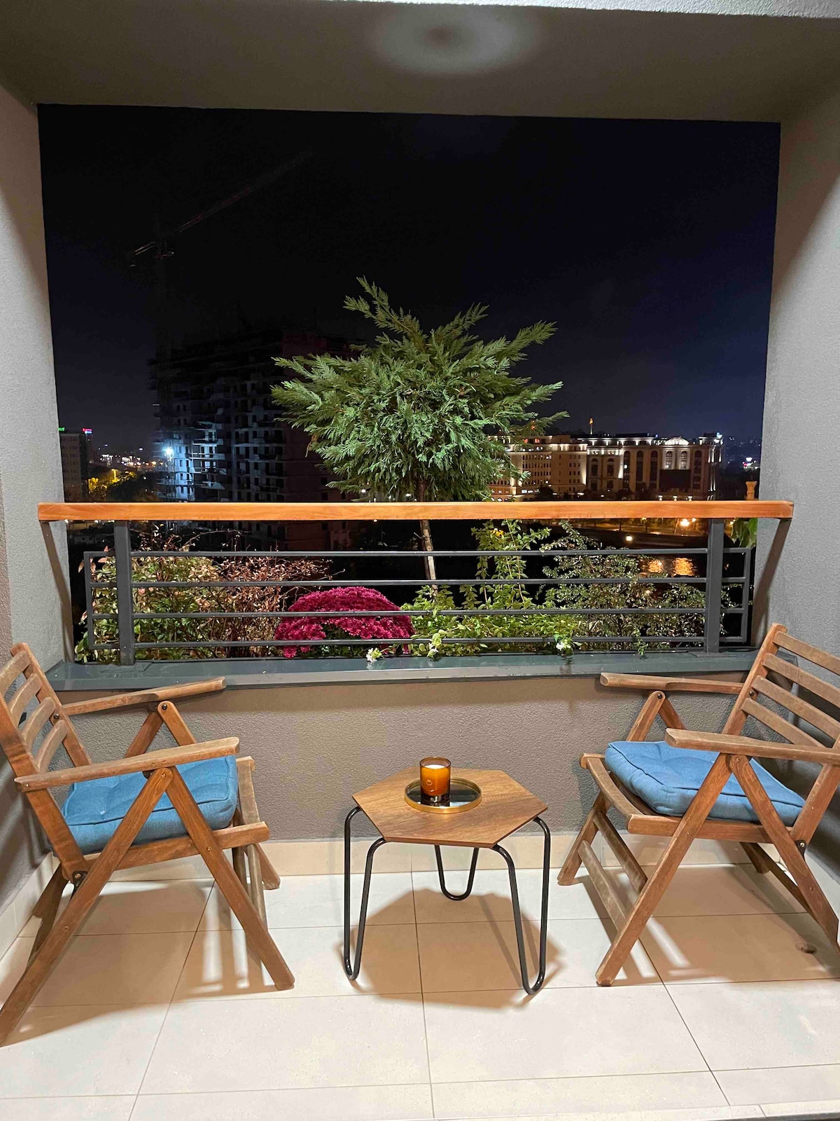 Located in the center of Skopje on a traffic-free street, this loft overviews Vodno mountain and it is just minutes walk from the city square. The neighborhood is young/trendy, close to the 'Bohemian Street', many authentic Macedonian restaurants and the bus going to 'Matka'. Carefully designed using high-quality materials, furniture, and contemporary art, this apartment has a bright light, a designated workspace area, an open plan living and dining space, and a balcony with a panoramic view.