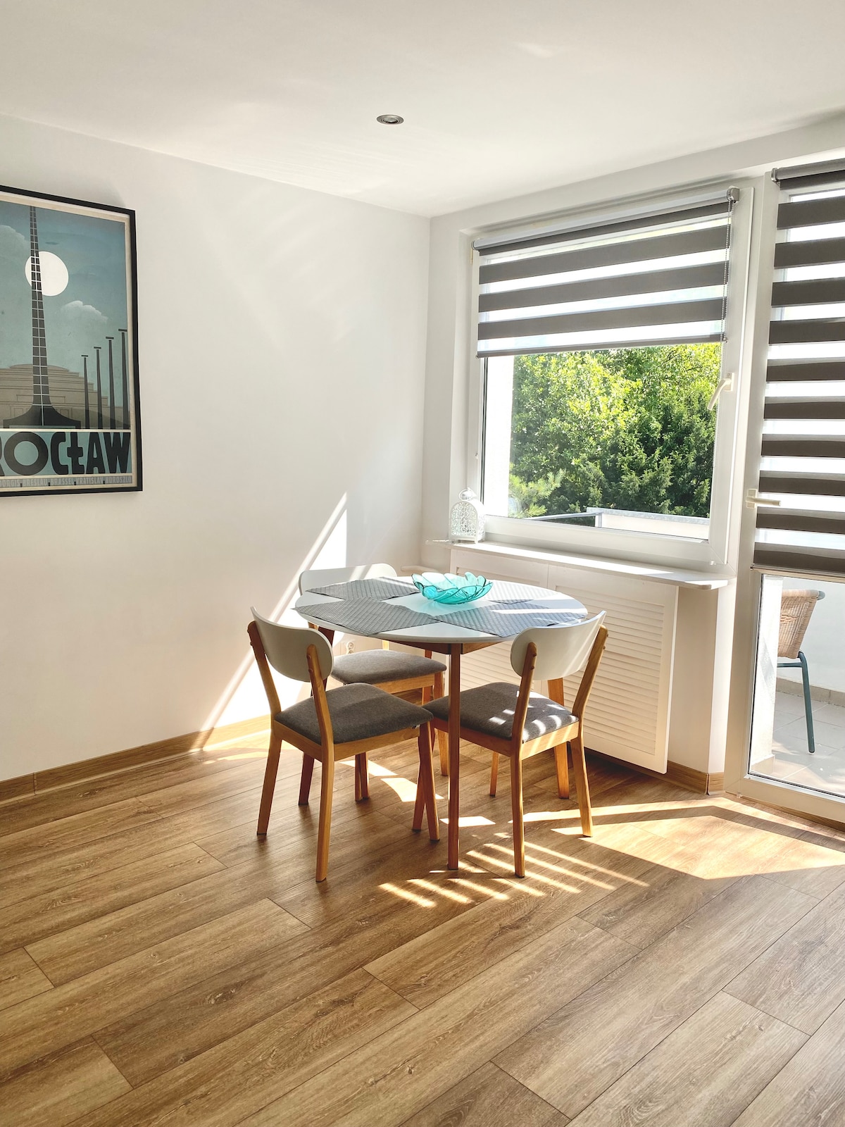 Admire how modern features blend harmoniously into a period apartment. A sunny front room overlooks a leafy neighborhood while houseplants and botanical prints continue the natural motif indoors. A cabinet displays a collection of elegant dinnerware. The apartment is near the city center of Wroclav. It's a 10 minutes by tram or 25 minutes walk to the centre (Arkady)Although a tram stop is close by, this is an incredibly quiet and peaceful place. Some quirky local cafes are just around the corner