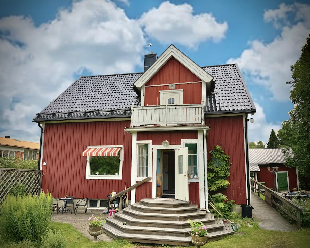 Boende med 8 bäddar i Docksta, Höga Kusten, Örnsköldsvik, Kramfors, Västernorrland uthyres Villan ligger 4 km väster om Docksta, Höga Kusten med utsikt över Skuleberget, uthyres min. 2 nätter. Fullt utrustat kök, badrum plan 1, wc plan 2 samt vedeldad bastu med dusch i källaren. Tvättmaskin med torkmöjligheter i källaren. Stort TV-rum med skrivhörna. Sällskapsrum med öppenspis. 3 sovrum med 8 sovplatser. Balkong på övre planet. Fri WiFi. Stor tomt med gräsmatta för grill och sällskapsspel.