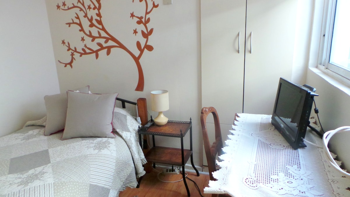 Disfruta este céntrico depto de 1 dormitorio + sofá cama ¡a un paso de todo!: calles principales, transporte (buses y metro), lugares turísticos, barrios bohemios (Lastarria, Barrio Italia), hospitales, plazas y parques. Ideal para estadías sin preocupaciones: tendrás todo lo necesario para que te sientas como en casa. Su vista al sur la hace fresca en verano aun sin aire acondicionado y ¡sin ruido exterior! las ventanas termopanel permiten descansar plácidamente. ¡Incluye un desayuno básico!