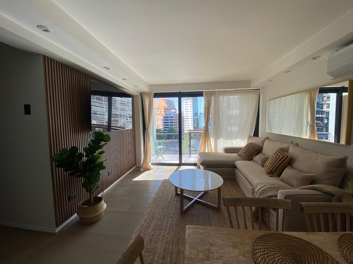 Departamento recientemente remodelado a tan solo metros de Mall Costanera Center y 50 mts de estación de metro Los Leones. Se encuentra en una calle con excelente vida nocturna, cercano a restaurantes, supermercados, clínicas, etc. Totalmente equipado para 3 personas.