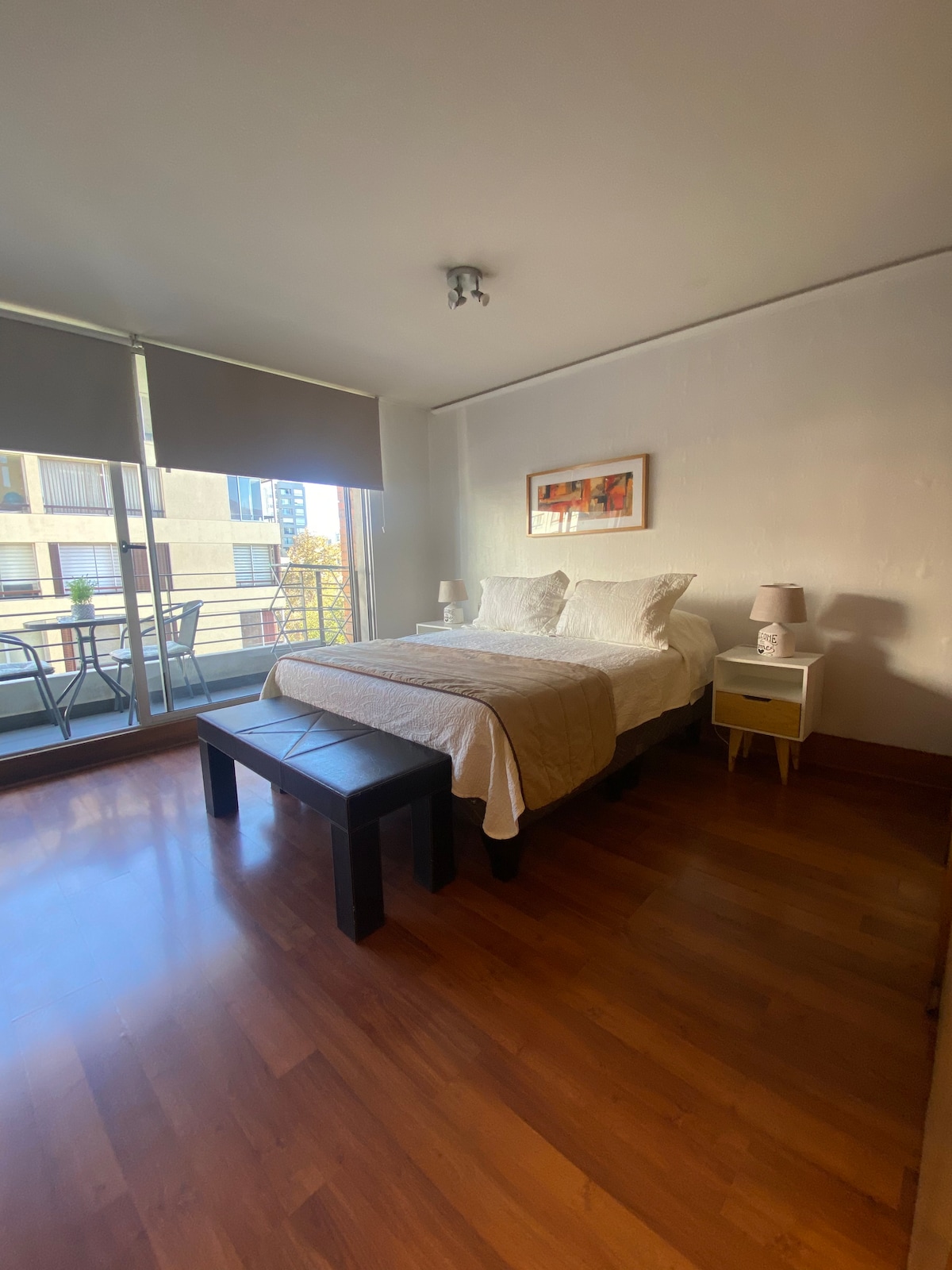It is a one-bedroom apartment with parking in downtown Providencia. Close to many shopping places, walking distance to Metro (1 block away), restaurants, and more. If you come to work, the internet is super fast, amenities are great, and you will have an awesome view of the San Cristobal Hill from the super big apartment's balcony and the rooftop.
