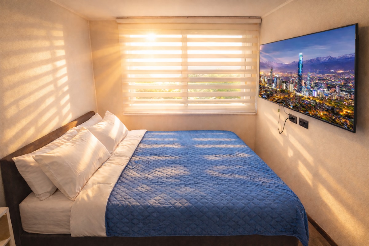 ¿Buscas estilo, descanso y buena ubicación? Este luminoso y moderno estudio tiene todo para una estadía inolvidable en Santiago. Está full equipado para 2 personas: ♨️ Aire acondicionado 🍴 Cocina full equipada 💻 Excelente Wifi y Zona de trabajo ✨ Decoración boutique 🥩 Parrilla a gas 🏓 Mesa de ping pong 🗻 Vista a la Cordillera 📚 Libros y juegos de mesa ¡Tenemos una guía local con recomendaciones para que disfruten al máximo de esta increíble ciudad!