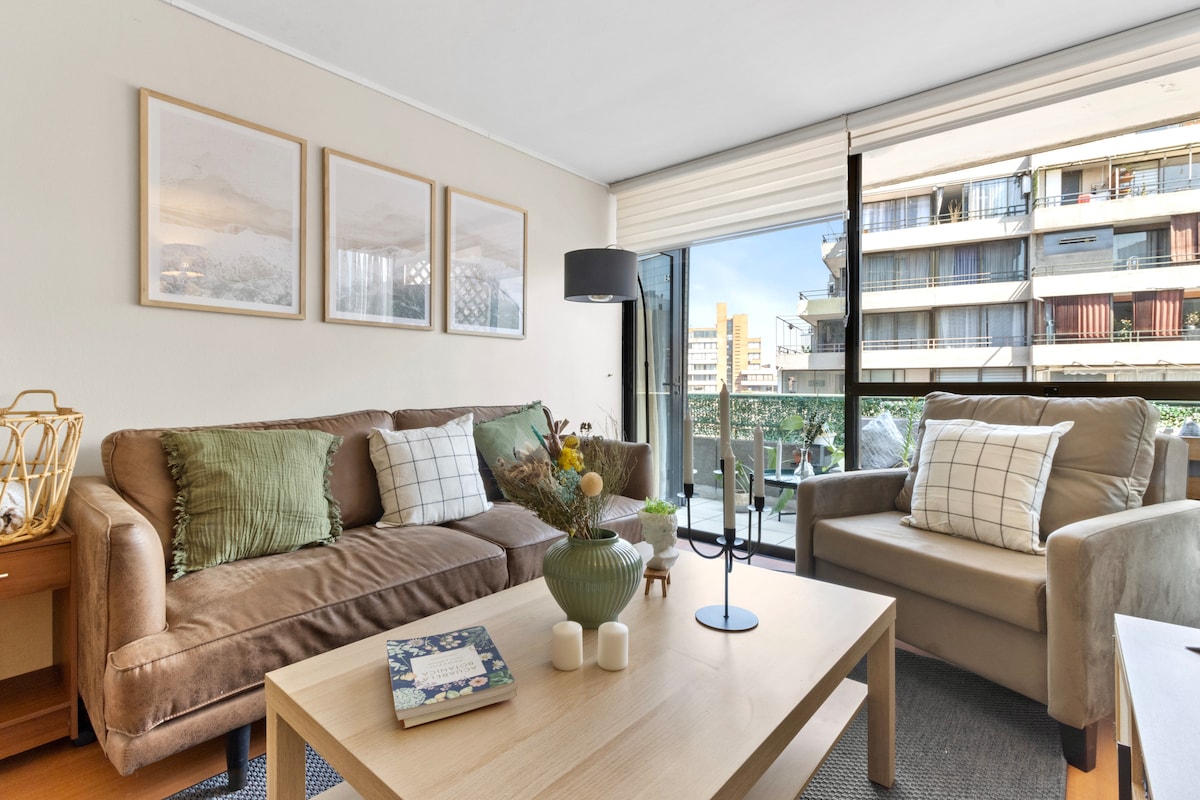 Disfruta la calma de la ciudad en un espacio moderno, luminoso y lleno de detalles pensados para sentirte en casa. Este departamento combina confort, diseño y funcionalidad en un ambiente cálido y relajante. Ubicado a pasos del metro Salvador, estarás cerca de parques, cafés y restaurantes, pero lo suficientemente apartado para descansar en un entorno verde y tranquilo. Perfecto para estadías cortas o largas, es el equilibrio ideal entre vida urbana y sensación de hogar.
