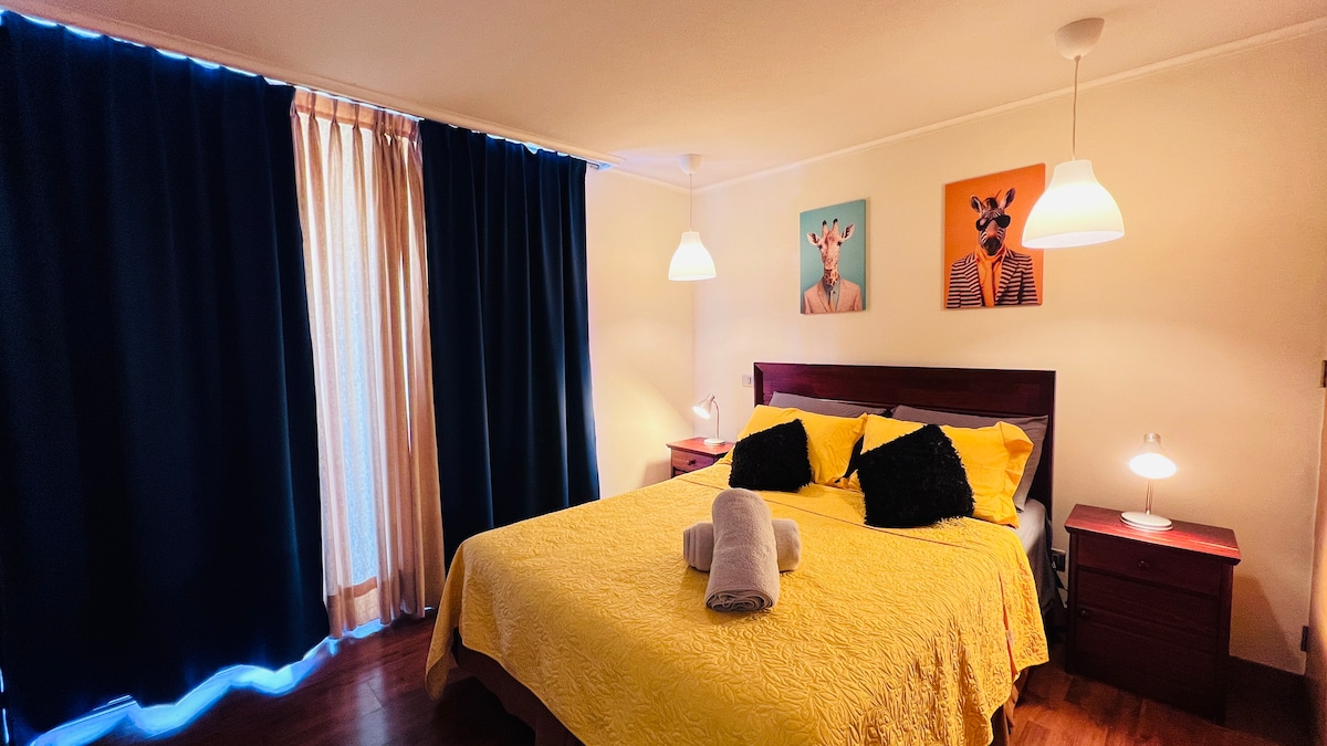 Rodéate de estilo en este destacado espacio y relájate en esta escapada única y tranquila. Este departamento cuenta con finos detalles y decoración pensada en el descanso y comodidad de los huéspedes. Cama King con sábanas blancas, escritorio, televisor, aire acondicionado en la habitación y terraza espaciosa. Cocina full equipada, living Tv y aire acondicionado y un sofa cama que duerme bien una persona adulta, con colchas y almohadas comodas para un tercero