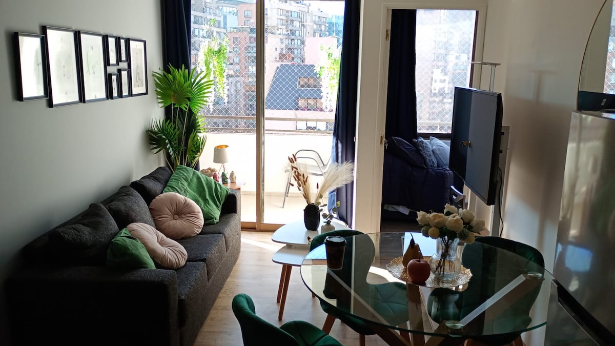 Nuestro encantador y acogedor departamento posee iluminación natural, una agradable decoración y todo lo que necesitas para tener una estancia cómoda. Está ubicado estratégicamente en el distrito financiero de Santiago. Un distinguido, central y seguro barrio, a pasos del metro, elegantes restaurantes, bares, Shopping Mall y parques. En invierno, desde esta calle salen los buses a los principales centros de SKI de Santiago.
