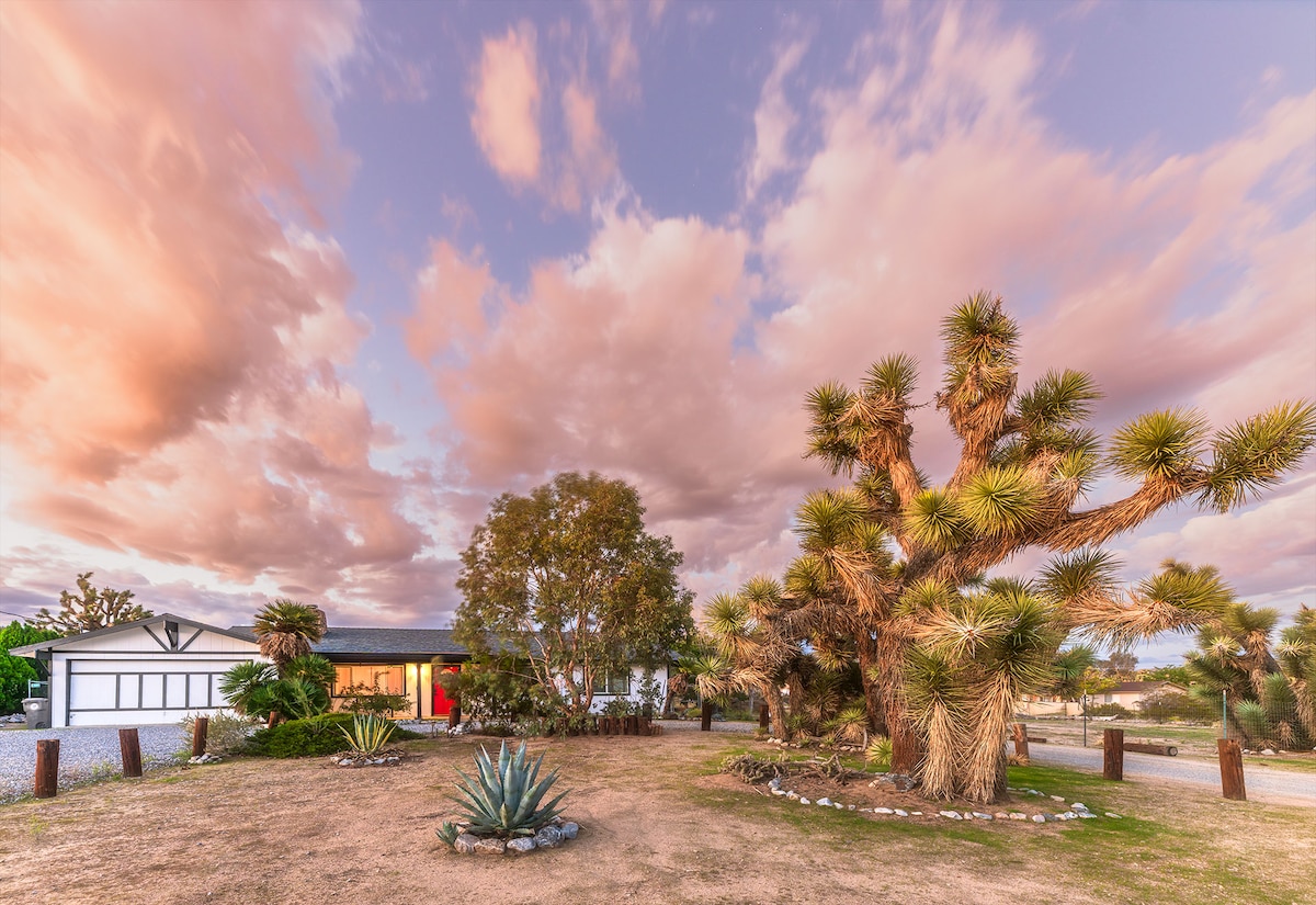 The Desert Rocks home is perched on top of a mountain with stunning Sunset views overlooking the mountains. It’s surrounded by incredible picturesque boulders and is a peaceful getaway for you to call home. Wake up to breathtaking sunrises while sipping a cup of coffee overlooking the boulders and valley. Take a morning stroll up the mountain to see a 360 view of the whole Joshua Tree area. Gather with friends in the hot tub or by the firepit + watch the colorful sunsets into a Starry Night Sky.