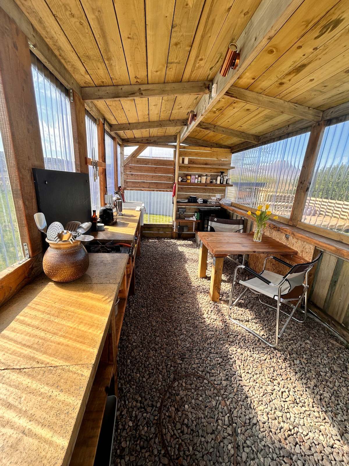The Little Hemp Cabin sits on our croft in Breakish, just outside Broadford in South Skye. It’s a small, self-contained space surrounded by open ground, big skies and shifting Highland weather. Built from hemp and timber, the cabin feels naturally warm and calm. The walls regulate temperature well, so it stays comfortable year-round without feeling sealed or artificial. Inside, the layout is simple and uncluttered, with everything you need and nothing you don’t.