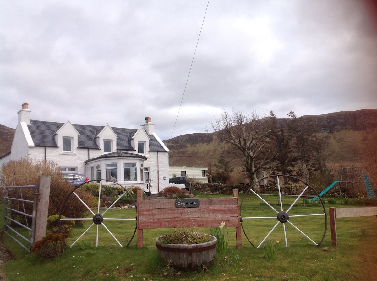 Cnoc hol family suite is a 2 bedroom self contained apartment with your own private entrance. There is a Garden area for your use to the front of the property and parking. There is no kitchen but we provide a continental breakfast pack. Wi-Fi and smart TVs in each bedroom. Beautiful views in a nice quiet area. We are 3 miles from Uig where there are shops, restaurants, Cafes & Takeaways and the Uig ferry terminal for going to the outer isle. We are 15 miles from portree which is a busy town