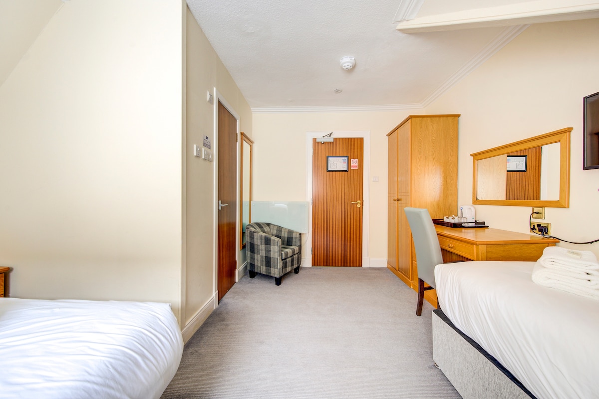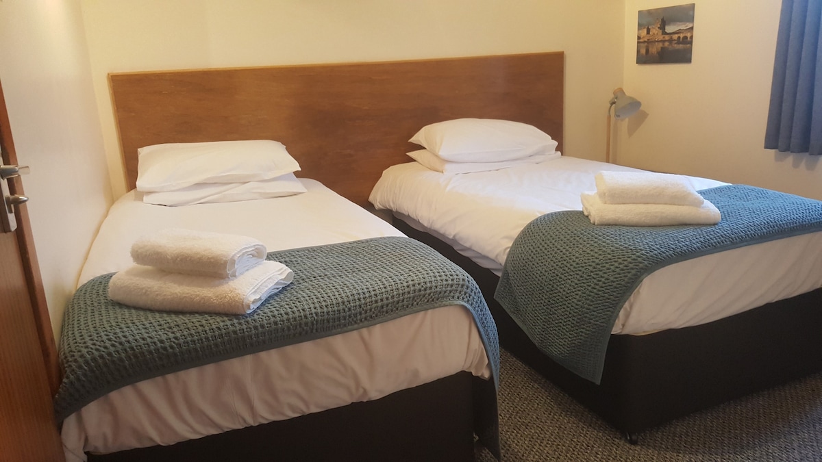 This is one of our Economy Twin Rooms. Simple and does the job, two twin beds with a private, sole use bathroom just across the hall. Other room types available directly.
