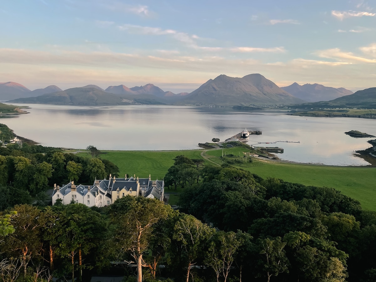 A luxury queen en-suite bedroom located within the Isle of Raasay Distillery with stunning views over to the Isle of Skye. Experience life at the distillery first hand in Borodale House, a magical Hebridean escape. With some of the best views from any distillery in Scotland, you can wake up to some of the #BestDistilleryViews of the Isle of Skye’s Cuillin mountains and our team distilling a new batch of whisky or gin.