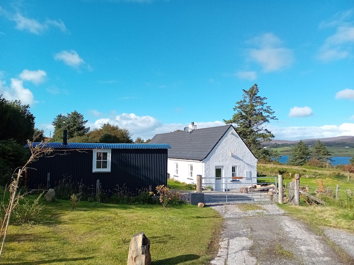 A tiny home offering a wonderfully cosy and welcoming retreat for 1 or 2. After a day exploring the Isle of Skye, a hot shower awaits, then relax by the woodburner or firepit and share a glass or two before snuggling down in the super comfy 5ft kingsize bed (US queen). Set in a quiet crofting township on the shores of the sea loch, Loch Snizort Beag. approx 9 miles to Portree Licence Number – HI-31210-F