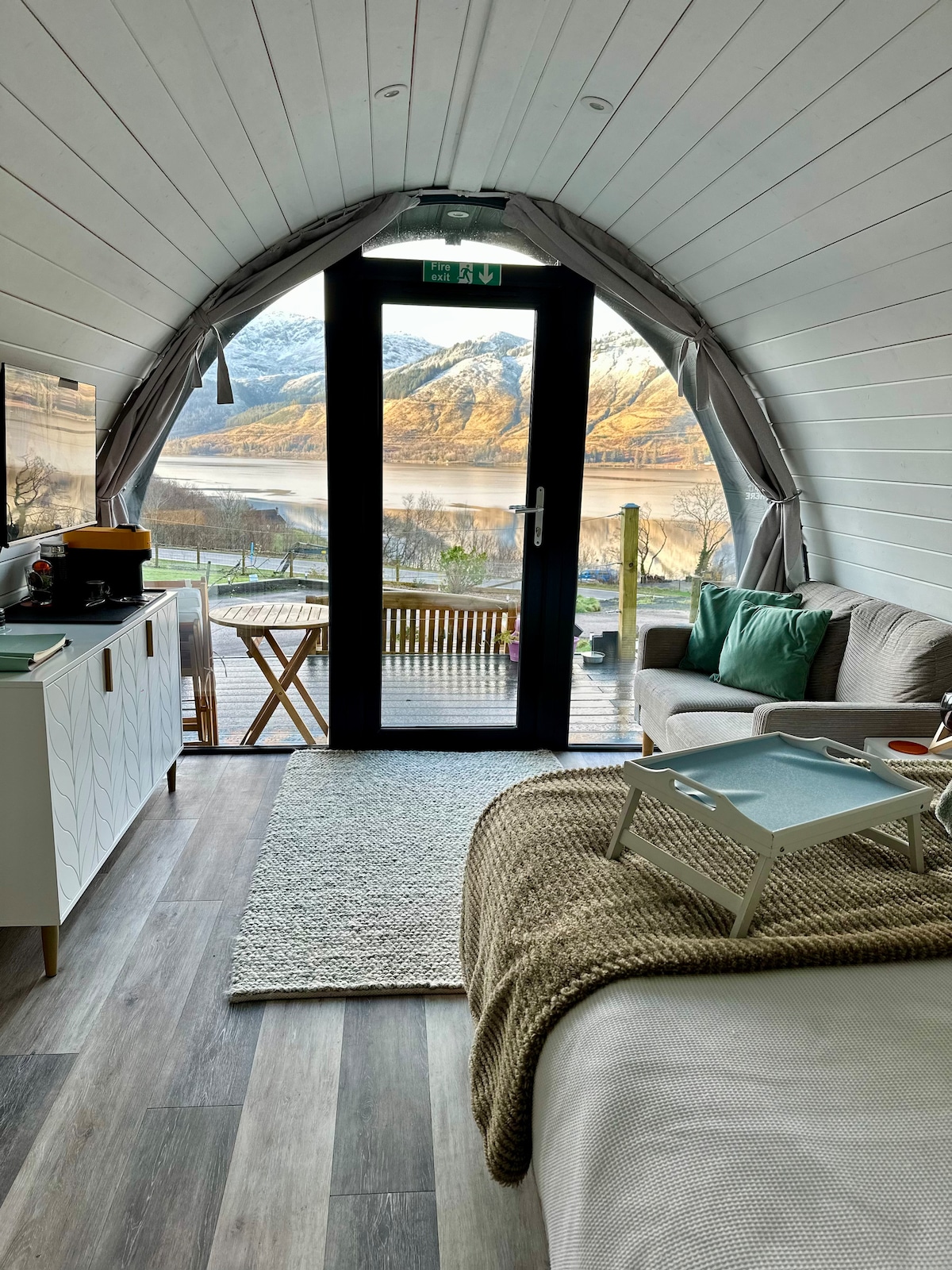 We're excited to offer our guests a 5* experience with our custom built cabin. We worked closely with our friends at the award winning Corr Cabins to create a tranquil and luxurious get away on the beautiful Isle of Skye! Cabin Beo is located beside our home and takes in the breathtaking views over Portree Bay and over to the Old Man of Storr, from its full size picture window. The cabin comes fully equipped with a wood burning stove, kitchenette, luxurious king size bed and full bathroom.