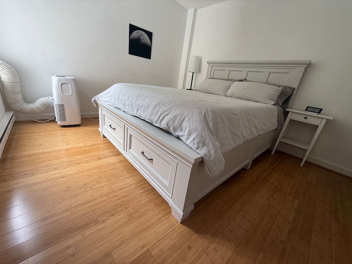 With a prime Bellevue location directly across the street from the Microsoft campus, this stylish condo is ideal for out-of-town guests. Stay with us and enjoy the following amenities: ✔Spacious bedroom with King-sized bed ✔Sleeper sofa in the living room ✔Dedicated working desk ✔Window AC for the bedroom ✔Balcony with patio dining set ✔1 dedicated parking spot ✔Coin-operated shared laundry ✔1 pre-assembled portable AC provided. Guest can hook up to the window