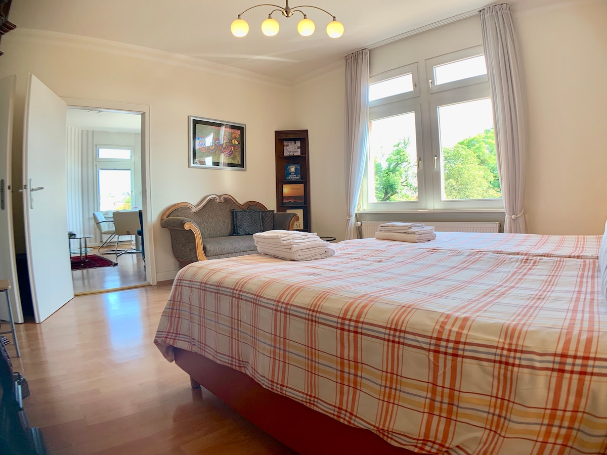 Deine Unterkunft ist ein separater Teil unseres Hauses und befindet sich in einem schönen ehemaligen amerikanischen Offiziersviertel. Du hast auf 35qm ein Wohnzimmer mit einer großen bequemen(!) Schlafcouch, einen Kühlschrank, ein Schlafzimmer mit Doppelbett (Nur Queensize!!!), sowie ein Badezimmer mit Dusche und Badewanne. Im Eingangsbereich befinden sich eine Teeküche, Geschirr, Besteck und Gläser aber KEINE KÜCHE! Du hast eine Terrasse hinter dem Haus und einen Parkplatz direkt vor der Tür.