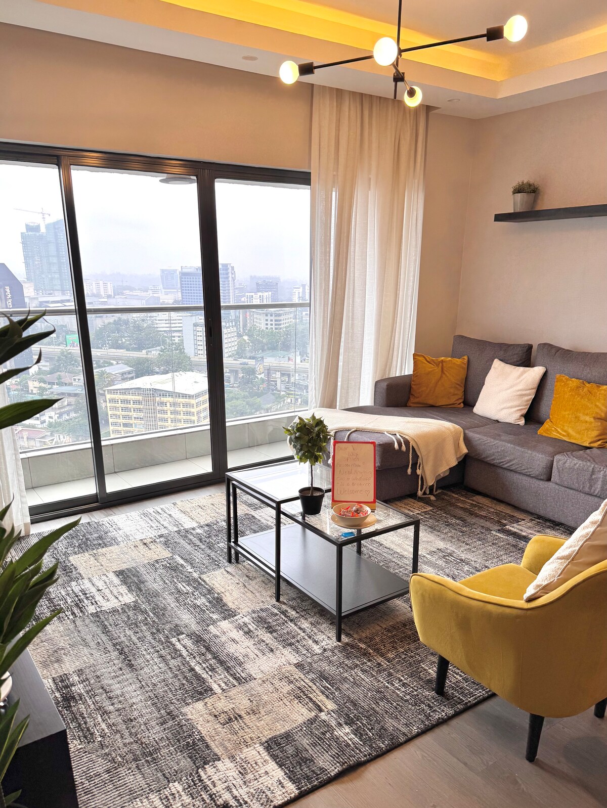 Enjoy a stylish experience at this centrally-located place. PREMIUM AMENITIES A.C Air Fryer / full kitchen Free clothes washing onsite Screens on door/window Premium Fast internet (60mbps) Netflix Lift Top coffee table/desk (work on couch) Water purifier for clean water BUILDING AMENITIES Central location Dedicated parking Gym, Sauna and steam room Game room w/ squash, snooker Infinity swimming pool Restaurant in building Grocery store in building Great water pressure