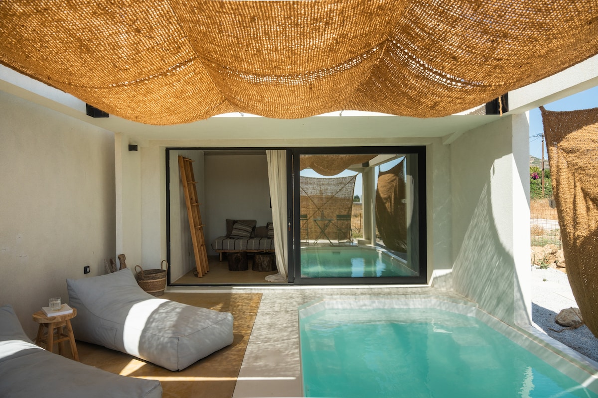 Exceptional location: situated in a 4000m2 garden and only 3 min. on foot to the beach, 20 min. from the airport, between the port and the main village of Skyros. While in close proximity to restaurants and mini market, these seaside houses allow visitors to enjoy numerous leisure activities such as swimming, diving, horse-riding, and hiking. Renovated this winter of 2020 with respect and love to the island's traditional architecture. The house consists of an open space without separate rooms.