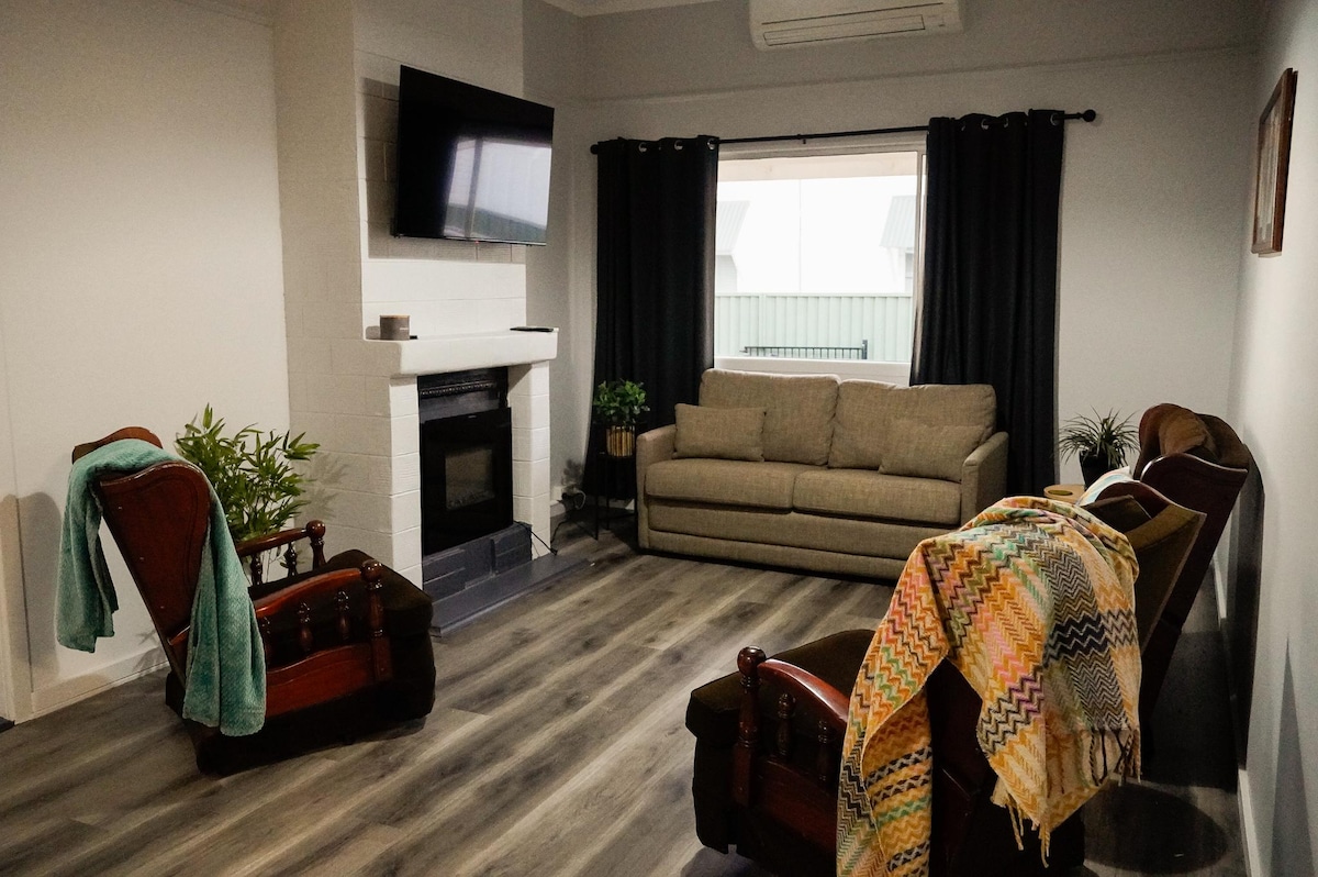 This well appointed cottage has three large air-conditioned queen/double bedrooms and a small bedroom with a single bed. Two bathrooms and full kitchen and laundry facilities. The lounge room has reverse cycle air-conditioning, wood heater, Wi-Fi, smart television, stereo and DVD player. A variety of board games and movies are provided. There is a double lockup garage and carport for a trailer or boat. A covered entertainment with barbecue facilities provides a place to unwind after a busy day.