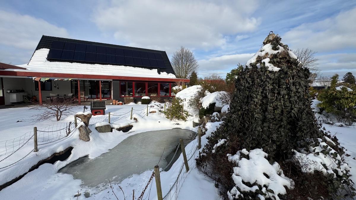 Welcome to your cozy Scandinavian family villa in Ruds Vedby, just 1 hour from Copenhagen. With 3 inviting bedrooms, a modern bathroom, dining spaces, and a private sauna, it’s ideal for families or small groups. Relax in the landscaped garden, enjoy outdoor dining, and soak in nature views. Fully equipped kitchen, fast Wi‑Fi, free washer & dryer and free parking included. Experience Danish village charm with modern comforts. Perfect for short getaways or long stays for professionals.