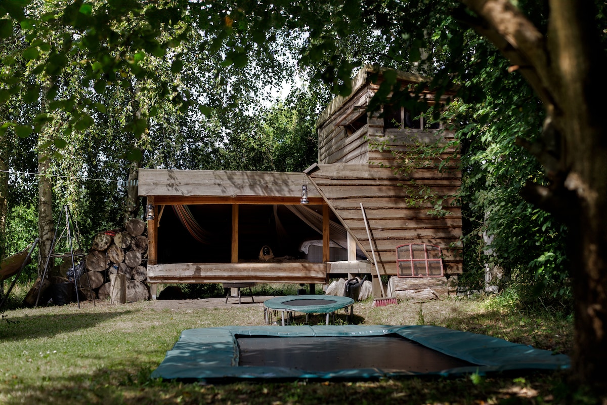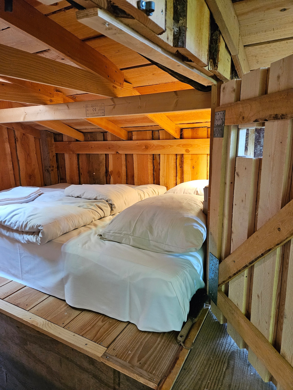 Nyd de smukke omgivelser i denne romantiske bolig i fire meters højde, midt i og tæt på naturen. Hytterne ligger i kanten af et lille uberørt skovstykke. Der er åben udsigt over markerne mod både solopgang og solnedgang (højsommer). Når og hvis der kommer nordlys vil dette kunne opleves fra første parket. Rovfugle og rådyr ses på markerne omkring. Egern, spætte og et utal af sangfugle underholder i skoven. Der er adgang til overdækket bålhytte og bålsted, som deles med stedets shelterplads.