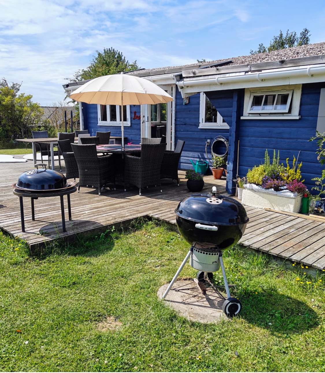 Lækkert sommerhus fra 2009, 250m til skøn børnevenlig sandstrand. 100m til købmand. Mindre soveværelse med dobbeltseng, større børneværelse med køjeseng, ekstra udtræksseng. Herudover er der to madrasser Stort badeværelse med vaskemaskine og tørretumbler. Lækkert køkken, m. alt udstyr, i åben forbindelse til stuen. Wifi + Chromecast i begge Tv Smuk lukket have med trampolin, terrasse m. Loungemøbler, gasgrill (5€ ). Hunde er velkomne, men ikke i møblerne! Ladestander 3,50kr pr kWh