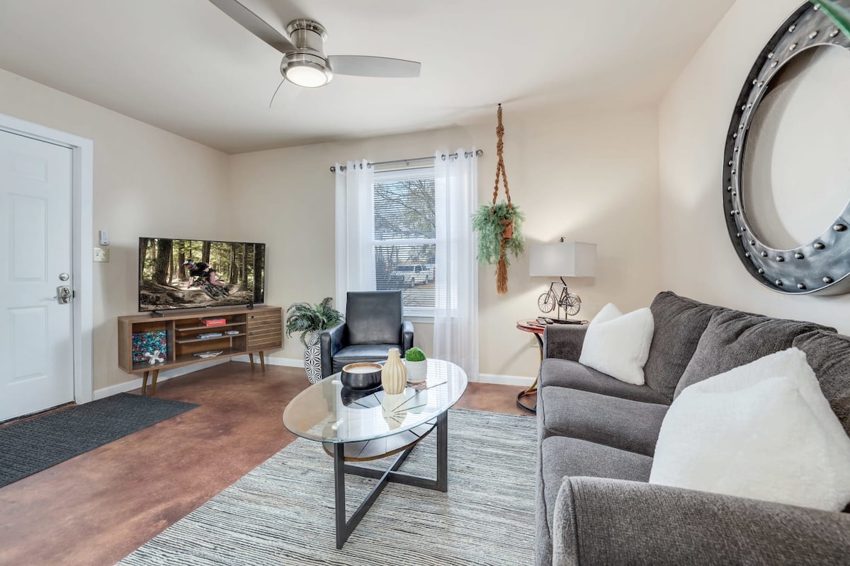 Welcome to our chic and cozy 1-bedroom, 1-bathroom apartment nestled in the heart of downtown Bentonville, Arkansas. With its modern design and inviting atmosphere, this space is tailor-made for a perfect getaway, whether you're seeking an escape for two, a thrilling mountain biking retreat, or a productive yet comfortable spot for business travel.