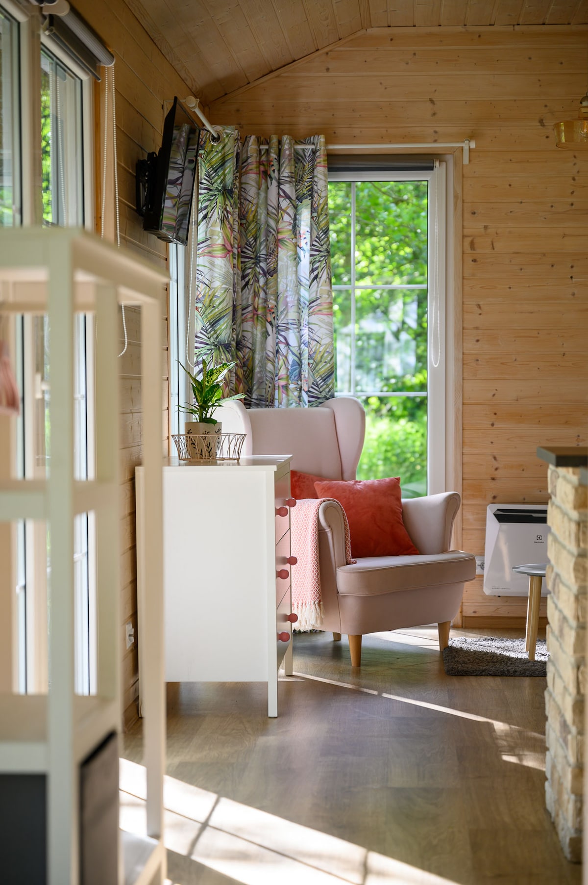Zapomnij o swoich zmartwieniach dzięki tym przestronnym i napawającym spokojem wnętrzom. Każdy domek ma 2 sypialnie na piętrze i salon z aneksem kuchennym i łazienką na parterze. Nad komfortem termicznym gości czuwa klimatyzacja z funkcją grzania a nad ich prywatnością - duży częściowo zadaszony taras z prywatnym ogrodem i grillem. Do każdego domku jest osobne wejście. Punktem wspólnym jest duży podgrzewany basen i plac zabaw dostępny dla wszystkich mieszkańców ośrodka.