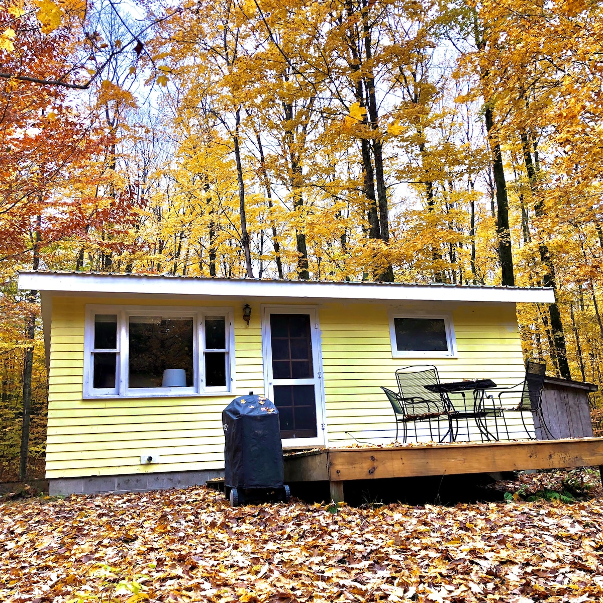 This quiet TINY (144sq ft) gem, privately tucked away and yet very accessible, Cabin Unwind, has a seasonal porch, queen sized bed, a few 'kitchen appliances' and GREAT wifi. The HOUSE SHARED bathroom has it's own side entrance, across from the Cabin. There is a SUMMER SHARED porta-potty and proper shower, right close by, as well. WINTER GUESTS, please note...DON'T come down the driveway without PROPER WINTER tires! Leave your car at the turnaround and I'll gladly shuttle you and your gear.