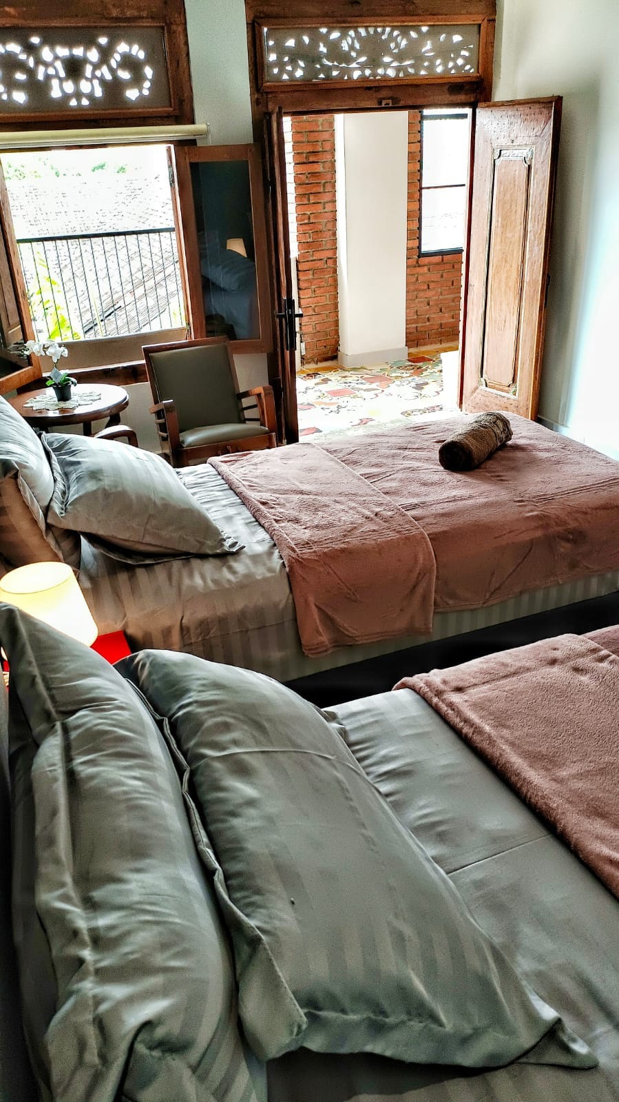 A beautiful heritage building in the middle of Yogyakarta now opens its doors to the public. Bask in the beautiful green serene surrounding and old world architecture without sacrificing convenience to walk to the hottest spots in Yogyakarta. Consist of two connecting rooms equipped with their own personal living area separate from the bedrooms for extra privacy. The best option for families or group of friends looking to share quality time together!