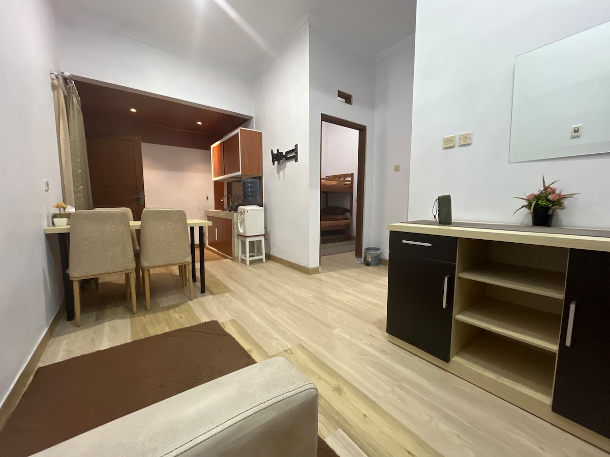 UNA Homestay Malioboro, hunian minimalis bersih di pusat Jogja. Hanya 5 menit ke Malioboro, dekat kuliner, belanja, & tempat wisata. 2 kamar tidur dan ruang tamu, semua ber-AC. Dapur siap pakai, kamar mandi bersih, Smart TV bisa YouTube dan Netflix. Cocok untuk keluarga, teman, atau tamu bisnis. WiFi cepat dan area parkir tersedia (garasi cocok untuk mobil kecil/sedang). Lingkungan tenang tapi strategis: dekat Malioboro, Stasiun Tugu, Kraton, dan Pasar Beringharjo. Host ramah siap menyambut.