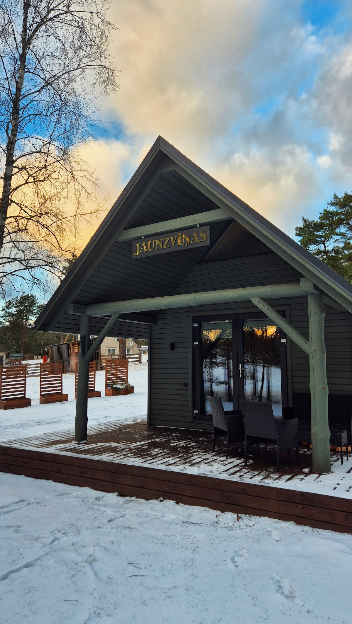 About the cabins - when you see them yourself, you will see that there are not only two, but three of them. The newly built two cabins are derived from the ancient third one to make the common landscape more interesting. The location of the cabins is very convenient, it is close to the sea, a shop, a bus stop, a gas tank, Cape Kolka and a cafe. We will indicate the places we recommend to visit at the end of the guide to make your visit more convenient.
