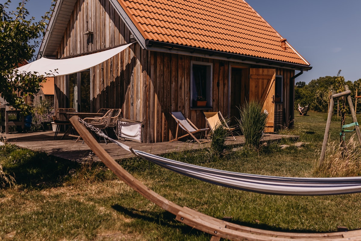 Far from the big city, our "Farmer's Cottage" is located on a picturesque plot on the edge of the forest reserve "Wiejkowski las". Here you can experience complete peace and pure nature! A walk through the forest, past numerous swamps and lakes, relaxing reading a book by the fireplace or a trip to the nearby Baltic Sea? All this and much more is what you can excpect here!